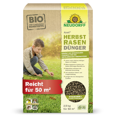 Wer seinen Rasen optimal auf die kalte Jahreszeit vorbereiten möchte, trifft mit dem Neudorff Azet HerbstRasenDünger die perfekte Wahl. Nach einem heißen und trockenen Sommer benötigen die Gräser spezielle Nährstoffe, um sich zu regenerieren und Kraft für den Winter zu sammeln. Dieser hochwertige Herbstdünger zeichnet sich durch seinen extra hohen Kaliumgehalt aus, der die Zellwände der Gräser festigt und die Frosthärte signifikant erhöht. So haben winterliche Rasenkrankheiten und Frostschäden kaum eine Chance. Das staubfreie Granulat lässt sich von August bis Oktober gezielt und einfach ausbringen. Ein großer Vorteil sind die zugesetzten Mykorrhiza-Pilze und Mikroorganismen. Sie fördern ein tiefes Wurzelwachstum und zersetzen organisches Material, wodurch lästigem Rasenfilz effektiv vorgebeugt wird. Mit einem 10,05 kg Sack kannst du bis zu 201 Quadratmeter Rasenfläche versorgen. Die Rasenfläche kann direkt nach der Anwendung wieder problemlos betreten werden. Sorge jetzt für eine starke Basis, damit dein Rasen im nächsten Frühjahr sofort dicht, kräftig und in einem satten Grün erstrahlt.