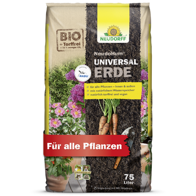 Als u uw planten binnen en buiten de beste groeiomstandigheden wilt bieden, is Neudorff NeudoHum Universal Soil de perfecte keuze. Deze hoogwaardige, turfvrije potgrond is ideaal voor vrijwel alle kamerplanten, balkonplanten en planten in de tuin. Door het gebruik van hernieuwbare grondstoffen zoals houtvezels en kokosvezels biedt het substraat een uitstekende wateropslagcapaciteit en zorgt het voor een optimale ventilatie van de wortels. Een bijzonder hoogtepunt van deze aarde is het sneldrogende oppervlak. Deze slimme functie helpt effectief vervelende schimmelmuggen te voorkomen, omdat het ongedierte geen vochtige basis heeft voor het leggen van eieren. Ook algen en schimmels hebben weinig kans zich op aarde te verspreiden. Omdat de NeudoHum Universal Soil de eerste weken al van voedingsstoffen wordt voorzien, is het verpotten bijzonder stressvrij en kunnen de wortels zich direct sterk ontwikkelen. Of het nu in een pot op het terras is, in een bloempot op de vensterbank of direct in het perk in de tuin - met deze bijzondere aarde van Neudorff creëer je de ideale basis voor een gezonde groei en prachtige bloemen, zonder het gebruik van turf.