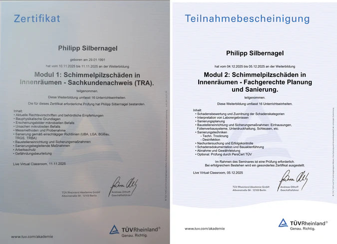 Gemeinsam vereinen wir biologisches Fachwissen mit technischer Präzision. Patricia Titz ist geprüfte Expertin für Pflanzenschutz (§ 9 PflSchG) und verantwortet die wissenschaftlich fundierte Wirkstoff-Entwicklung bei Silberkraft. Philipp Silbernagel bringt als TÜV-zertifizierter Sachverständiger für Schimmelpilzschäden und Ingenieur die nötige bauliche Expertise ein, um Ursachen ganzheitlich zu bekämpfen. Unser gemeinsames Ziel: Produkte zu entwickeln, die keine Kompromisse bei der Wirksamkeit machen, aber Mensch, Tier und Umwelt stets verantwortungsbewusst im Blick behalten.